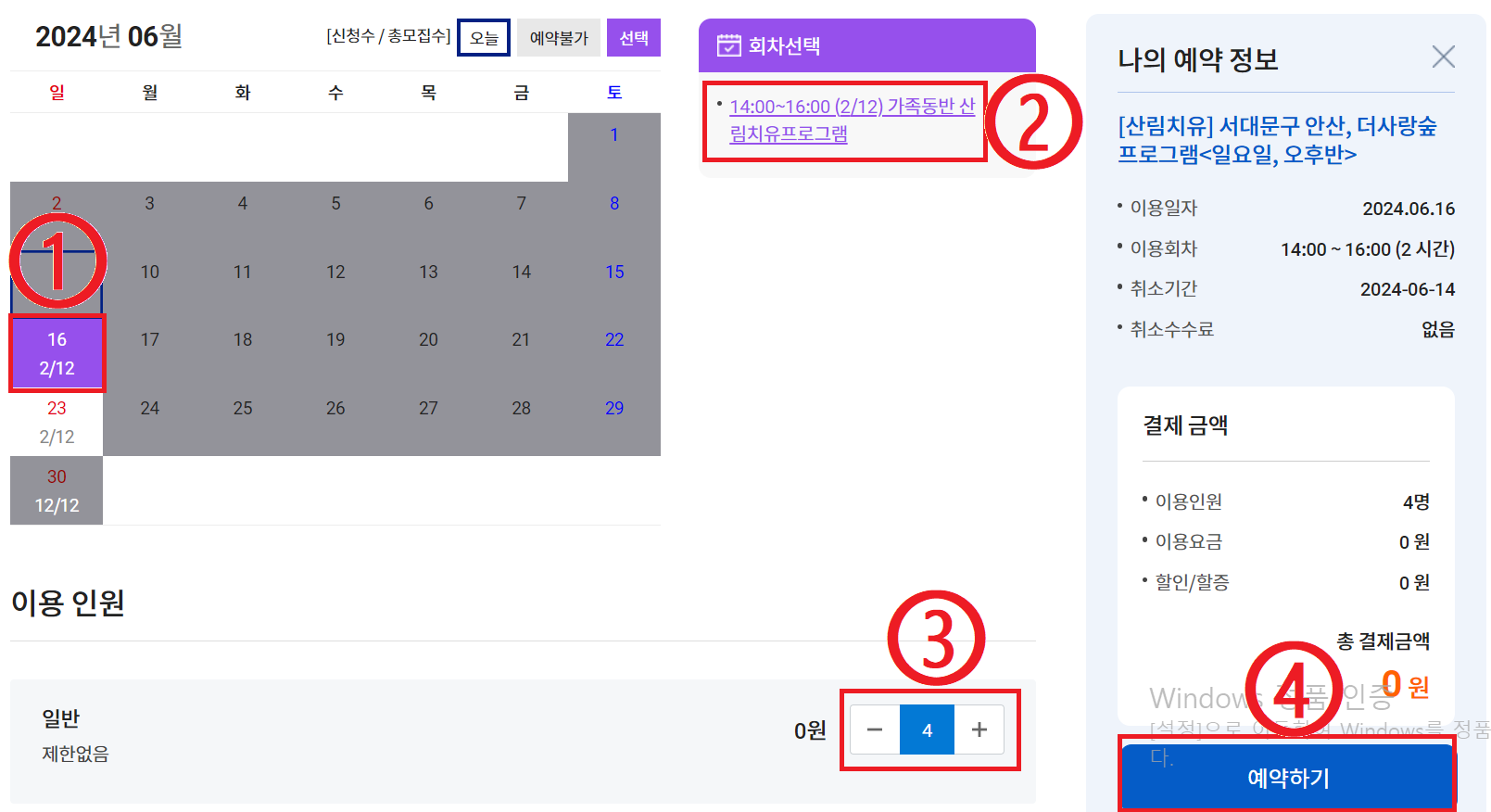 전달 15일 부터 예약하시어 가족들과 함께하는 뜻 깊은 프로그램을 무료로 선점하시기 바랍니다. (예를 들어 7월 프로그램이라면, 6월 15일부터 예약가능)